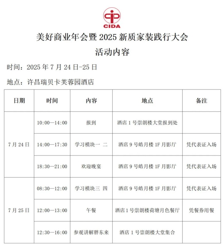 1、本次学习协会不收取任何费用,通过协会报名参加“美好商业年会暨2025新质家装践行大会”的嘉宾,不需要缴纳任何参会费用!